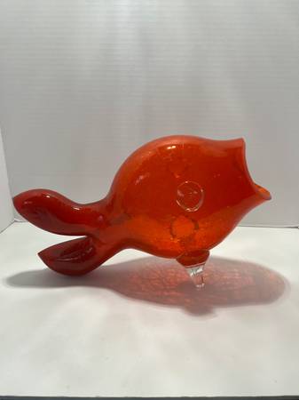 Blenko Glass 5433C Guppy Fish Vase Dreamcicle Handblown Crackle Glass W/label is 1st Quality, New in 2025. 13 inches long and 9 inches tall.A beautiful addition to your collection. Please see photos...