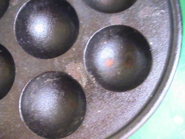 Cast Iron Aebleskiver pan. Rough in spots, could probably use re-seasoning. No makers marks but I couldn't find one exactly like it on-line. Selling it for $12.00